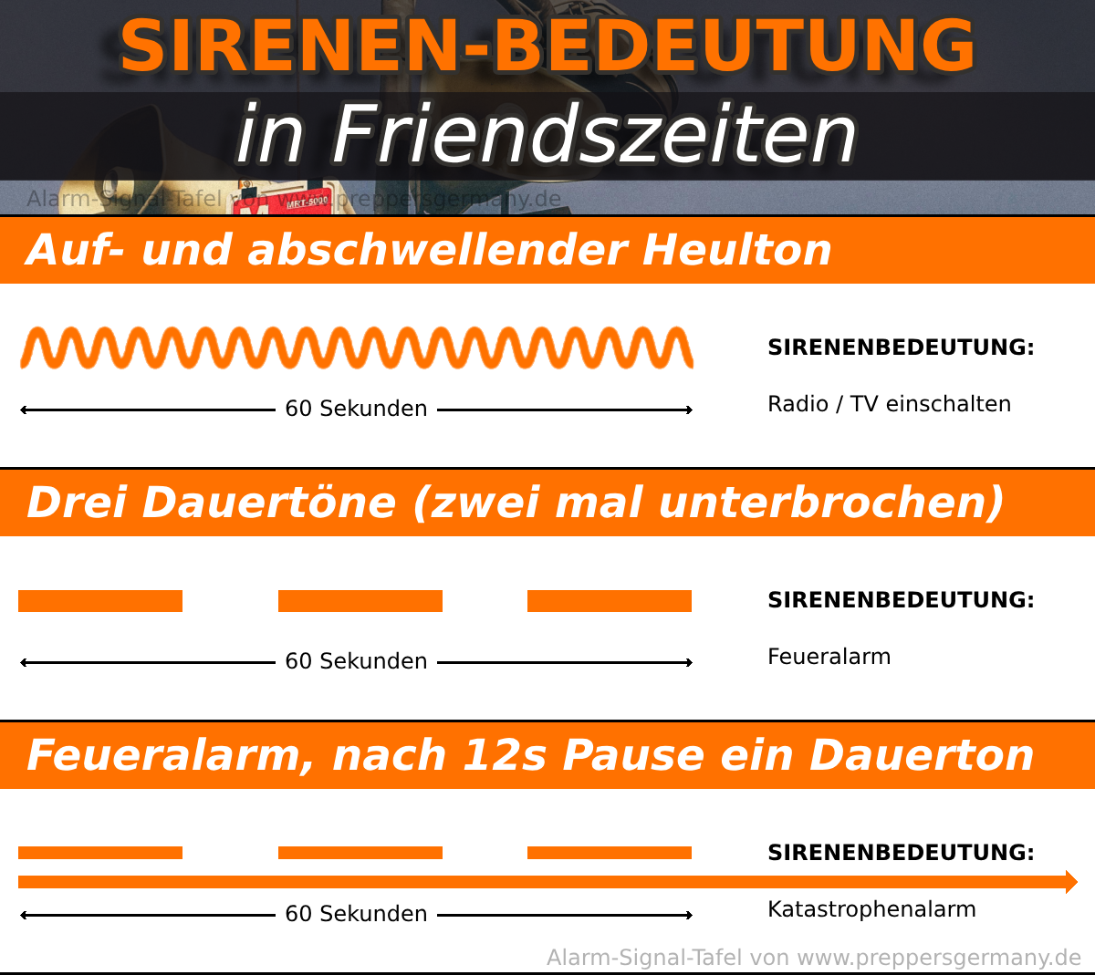 Warn-Sirenen-Signale in Friedenszeiten