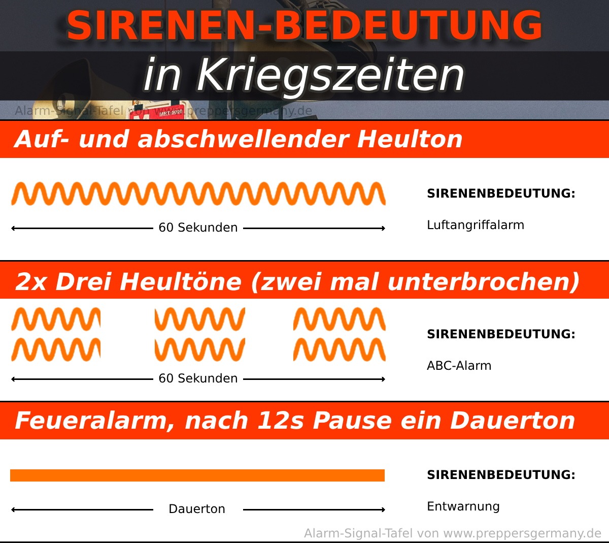 Warn-Sirenen-Signale in Kriegszeiten